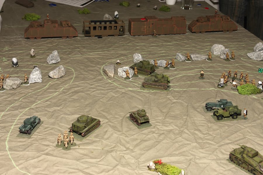 As the Bolshevik heavy armour trundles forward, the Afghan armoured cars retreat to cover